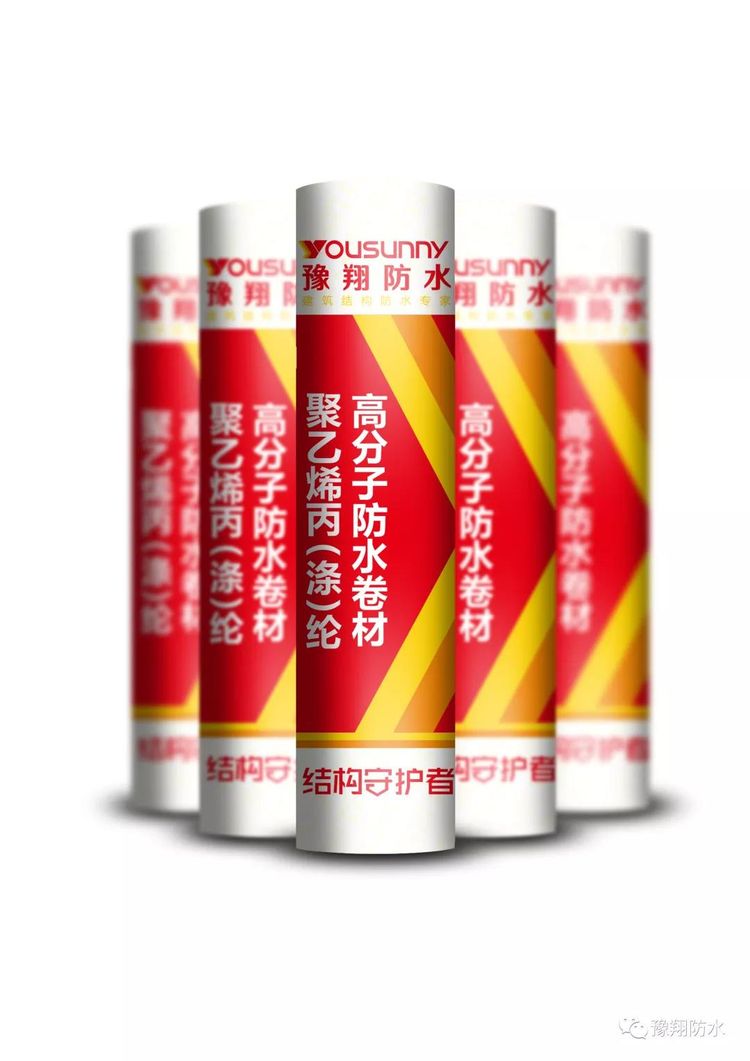 聚乙烯丙綸、滌綸防水卷材是以性能優(yōu)異的LLDPE、EVA原生樹(shù)脂和強(qiáng)度高、耐老化性能優(yōu)異的合成高分子纖維布為主要原料,配以抗老化劑、穩(wěn)定劑、紫外線屏蔽劑、經(jīng)塑料工藝一次擠出成型的高分子防水卷材。